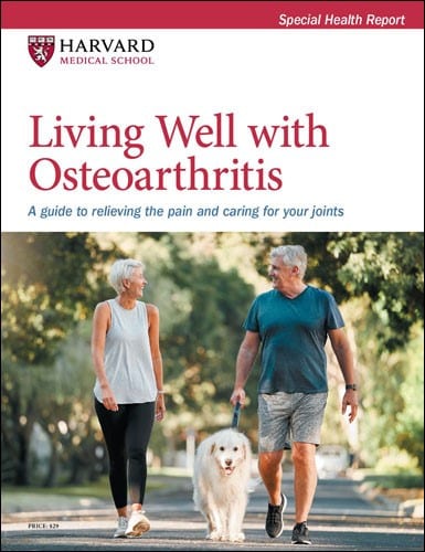 If you have osteoarthritis, you can take steps to protect your joints, reduce discomfort, and improve mobility — all of which are detailed in this Special Health Report, Living Well with Osteoarthritis: A guide to keeping your joints healthy. If you don’t have osteoarthritis, the report offers strategies for preventing it.